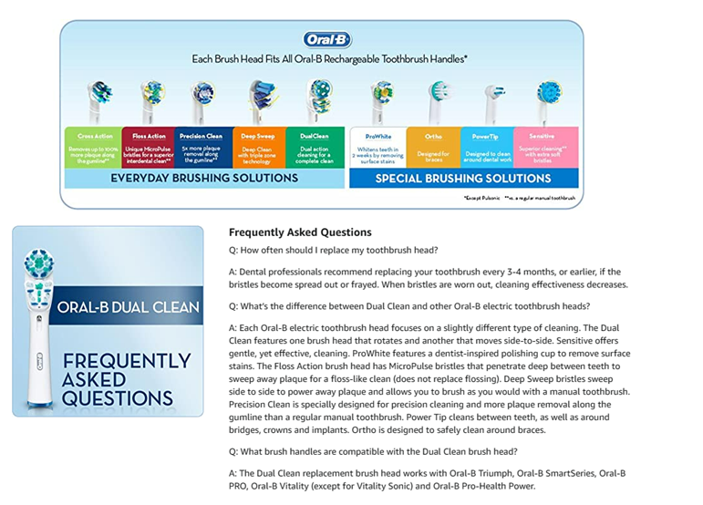 • Includes 3 Genuine Oral-B Dual Clean Electric Toothbrush Replacement Brush Heads