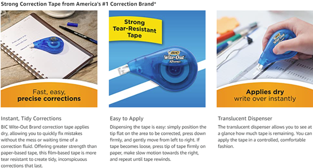 • Suitable for righties and lefties, these BIC Wite-Out Brand tapes offer a wide variety of use amongst students and employees for their documents and assignments