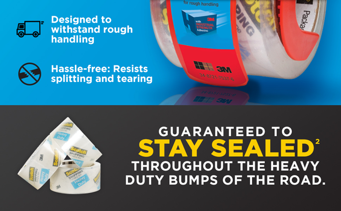 • Guaranteed to Stay Sealed* (If your box does not stay sealed, 3M will refund the purchase price of this tape. Proof of purchase required.