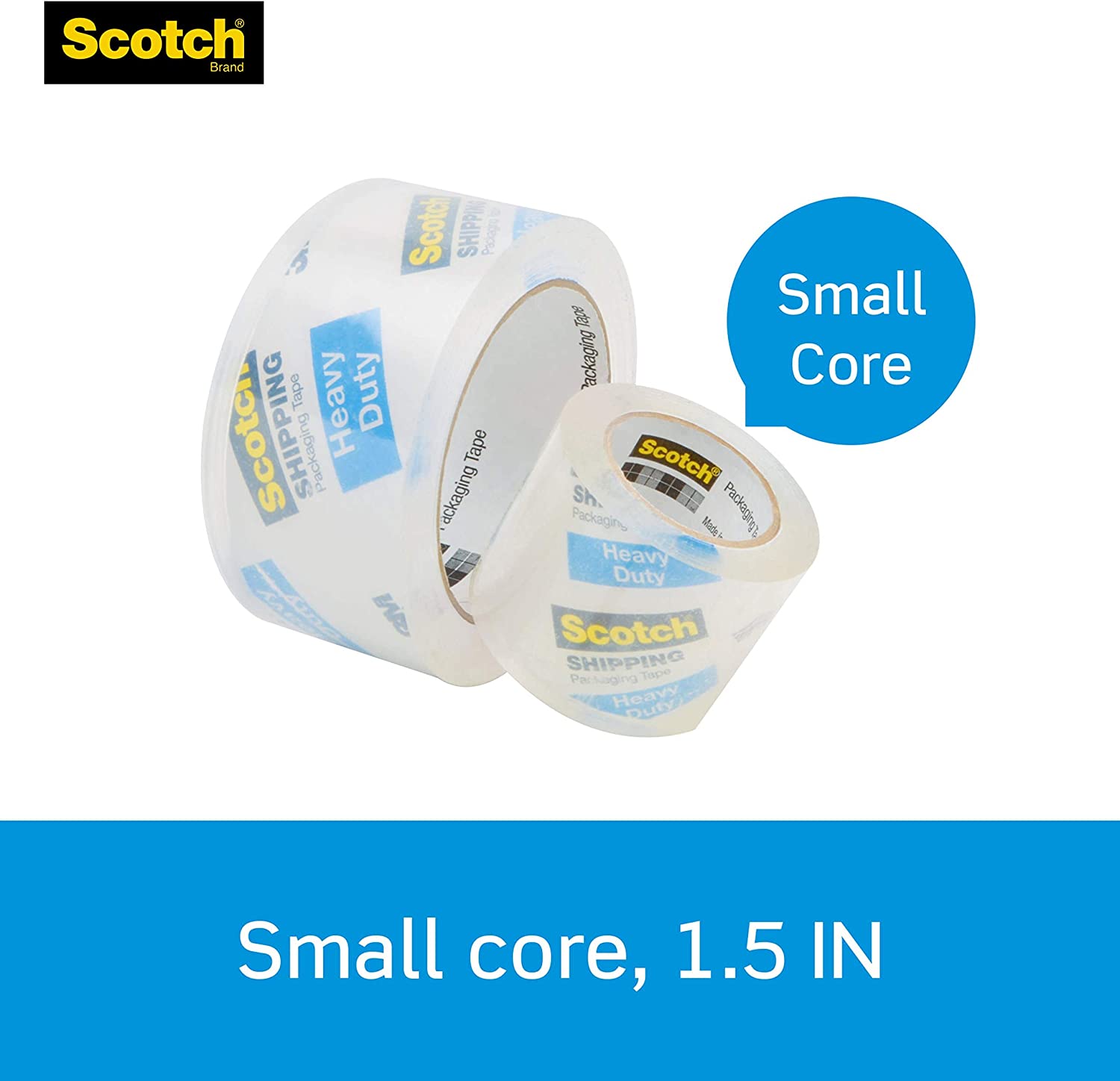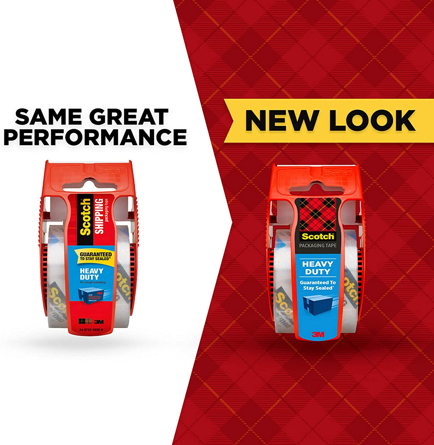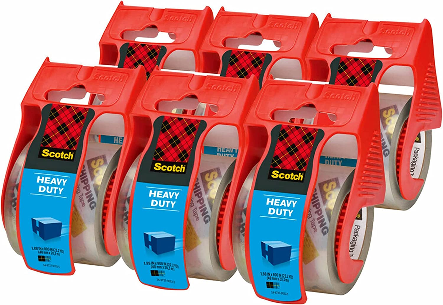 Scotch Heavy Duty Packaging Tape, 1.88" x 22.2 yd, Designed for Packing, Shipping and Mailing, Strong Seal on All Box Types, 1.5" Core, Clear, 6 Rolls with Dispenser (142-6)