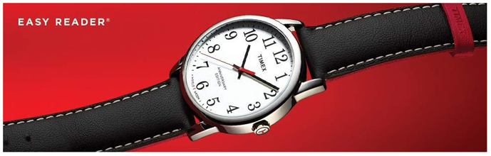 Never struggle to read the time, thanks to Timex's Women's Easy Reader Gold-Tone Black Leather Watch. Clean, classic lines give this style its streamlined appeal, and a comfortable black leather strap ensures long-term, comfortable wear. A slender, circular gold-tone case surrounds a bright white dial, complete with black-tone Arabic numerals and hands. Quartz movement provides reliable accuracy, while water resistance to 99 feet and a mineral crystal help protect against damaging wear and tear.