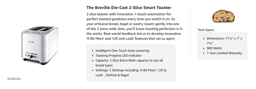 - The Breville 2-Slice Smart Toaster is a compact toaster that lets you feel in control; One touch automation lets you monitor your toast's progress using "Lift & Look" and add extra time using " A Bit More" to toast your favorite bread types to perfection