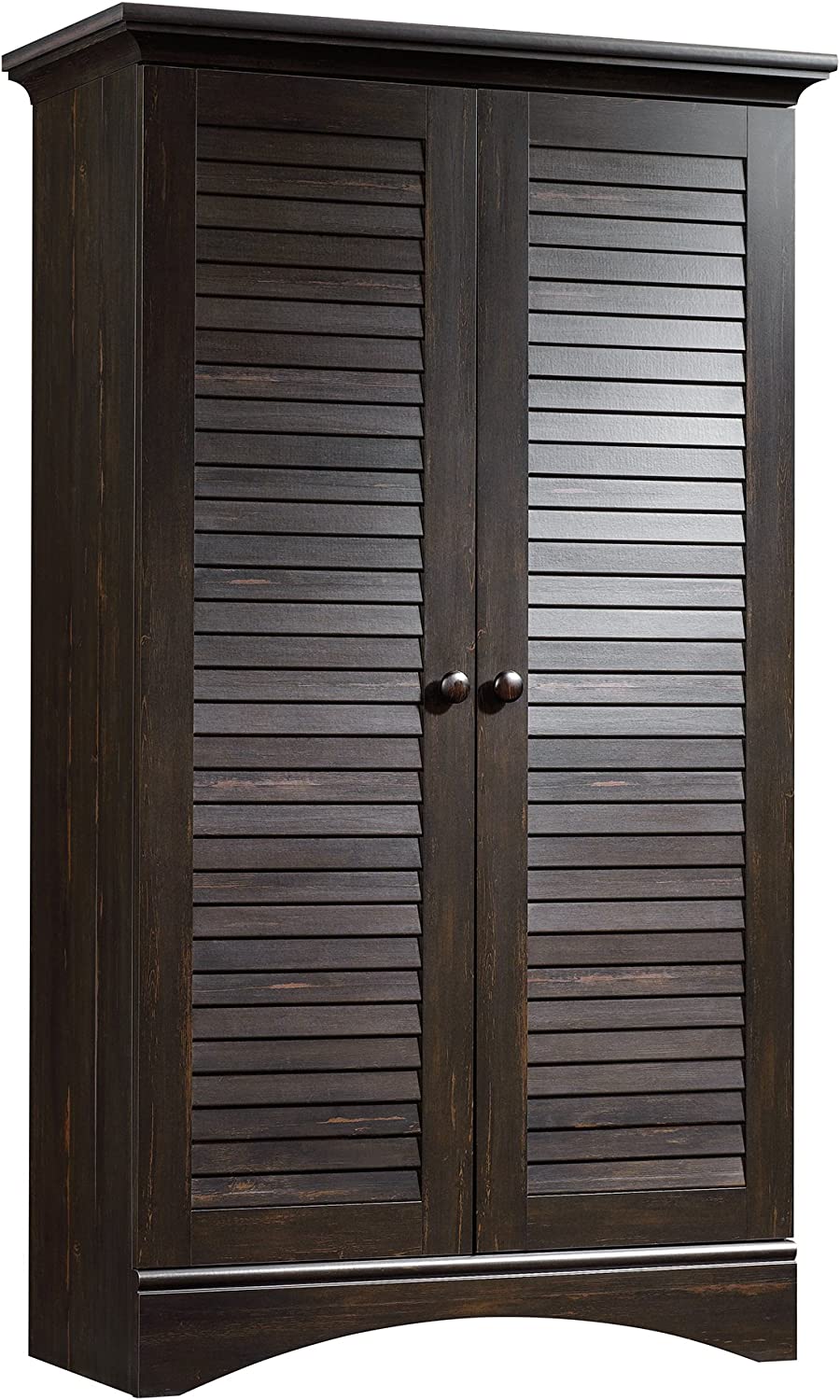 Sauder Harbor View Storage Cabinet, L: 35.43" x W: 16.73" x H: 61.02", Antiqued White Finish