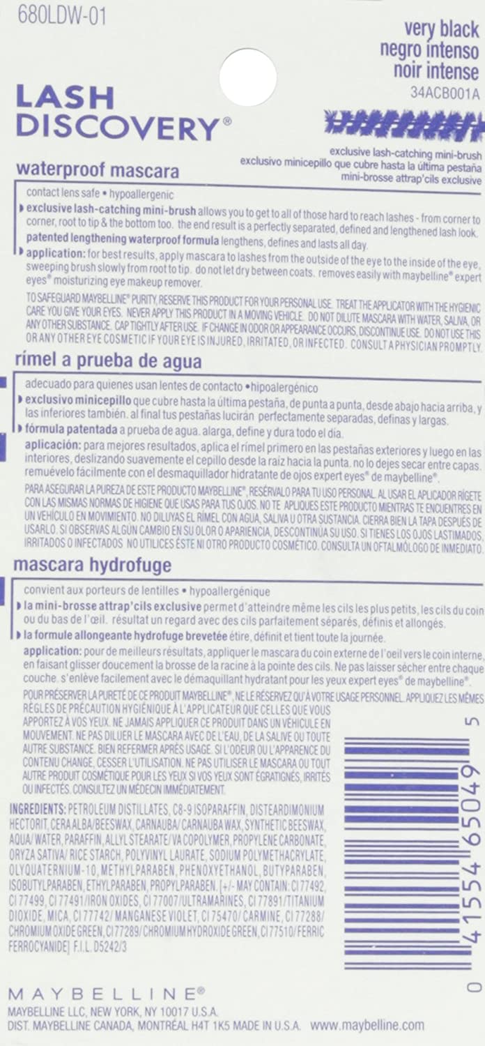 Maybelline New York Lash Discovery Waterproof Mascara, Very Black 361, 0.16 Fluid Ounce