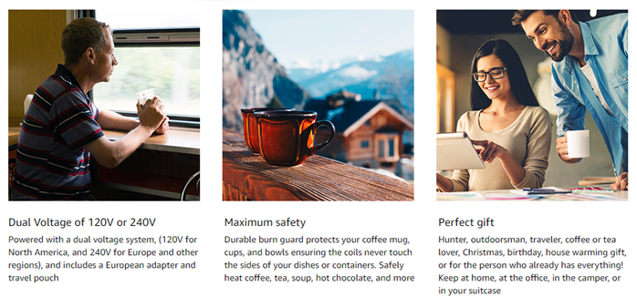 • VERSATILE: Perfect coffee and tea heater at the office, at home, or while you travel. Wonderful addition to your camping accessories. Compact, lightweight, and portable. No need for a bulky electric kettle