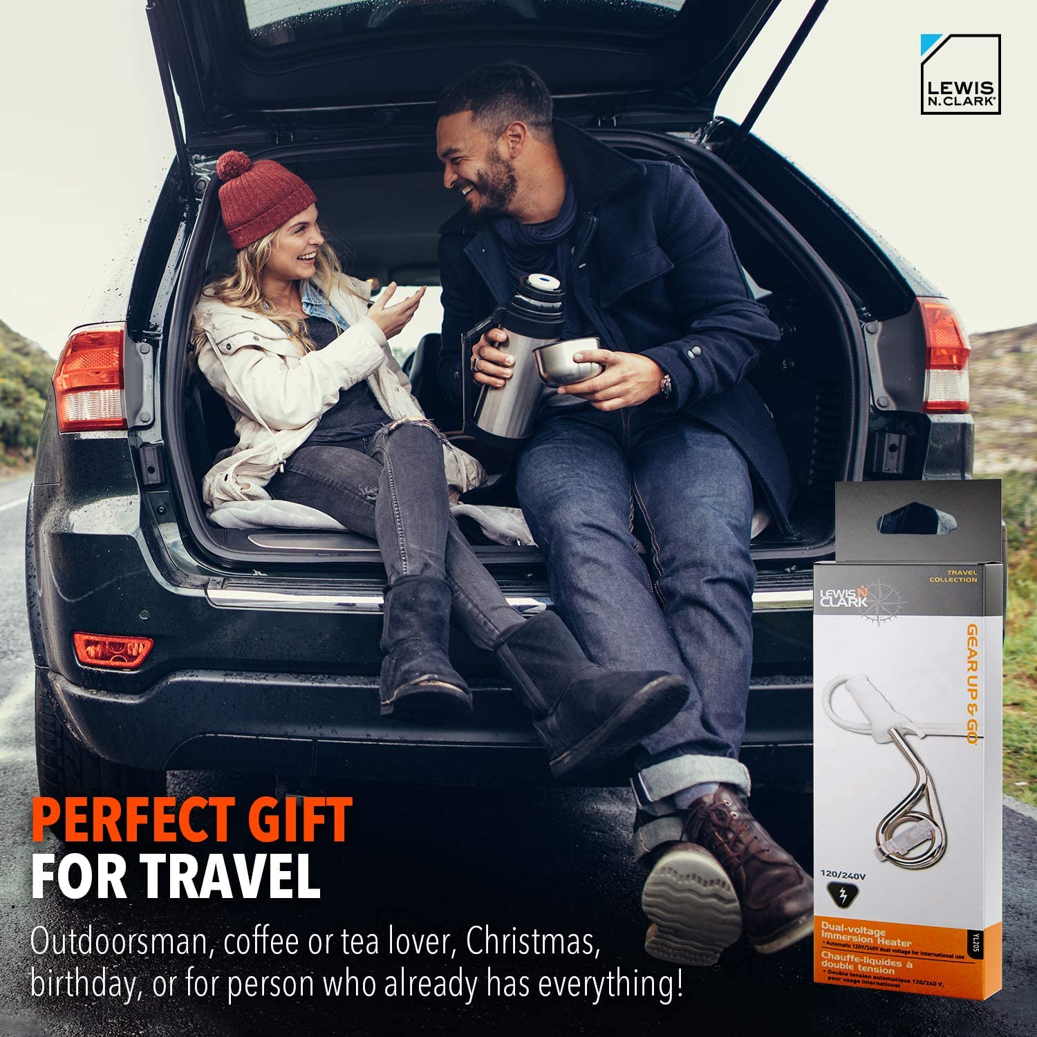 Lewis N. Portable Immersion Water Heater + Electric Kettle Alternative for Coffee, Tea + Hot Chocolate, Camping, Travel + Office w/Travel Adapter, White, 120/240v