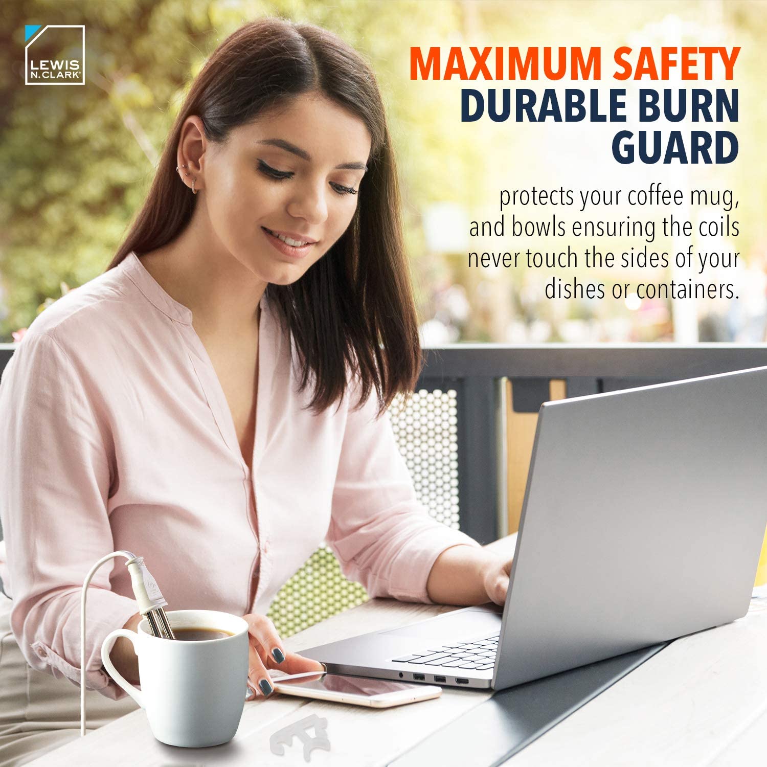 • MAXIMUM SAFETY: Durable burn guard protects your coffee mug, cups, and bowls ensuring the coils never touch the sides of your dishes or containers. Safely heat coffee, tea, soup, hot chocolate, and more.