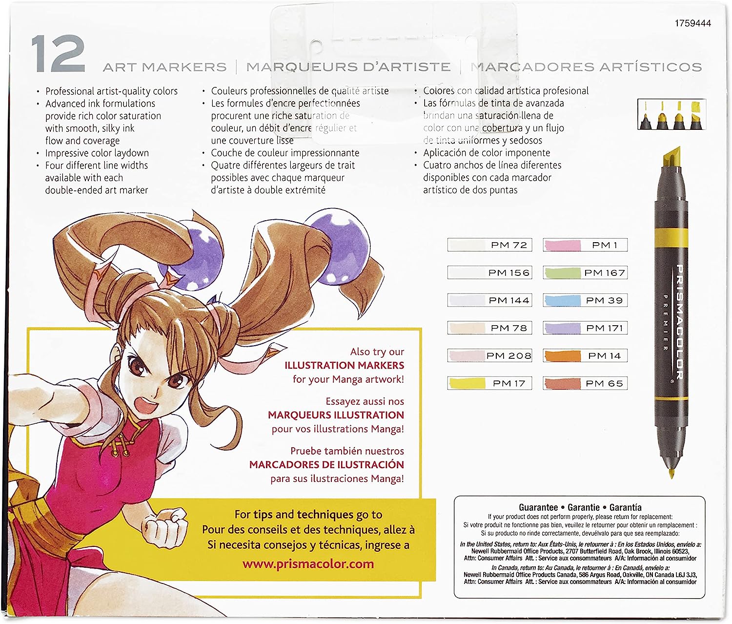 Prismacolor Premier Double-Ended Art Markers, Fine and Chisel Tip, Manga Colors, 12 Pack