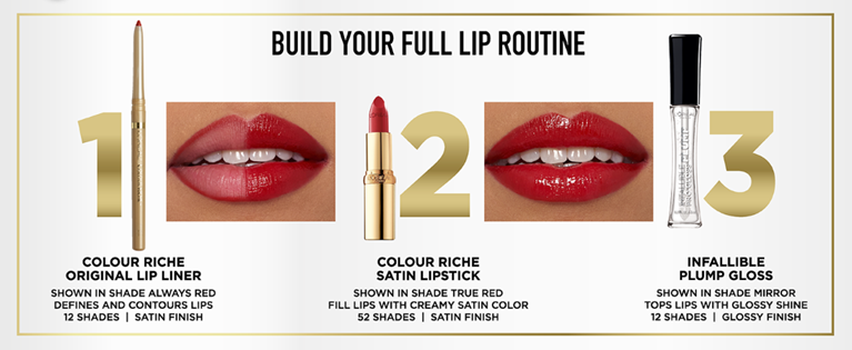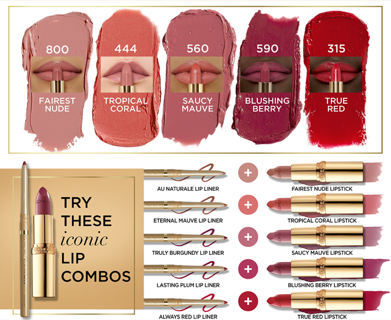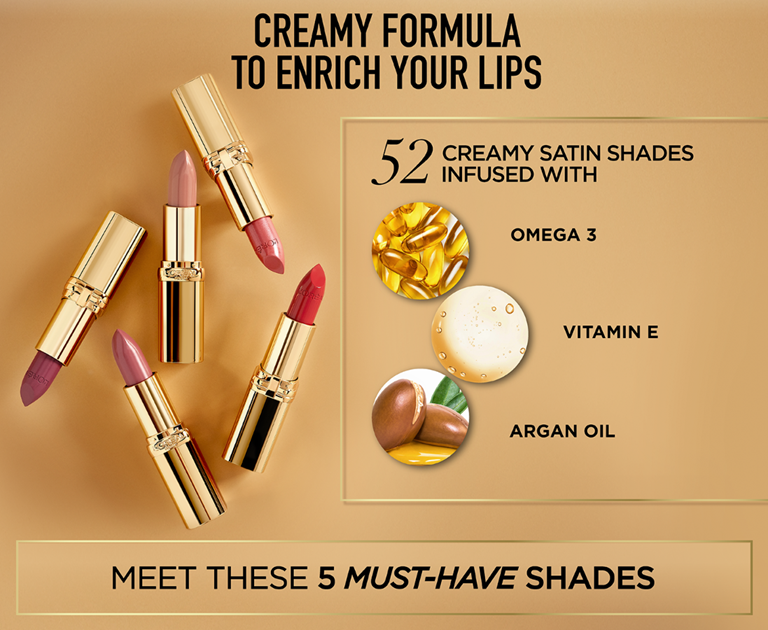 • L'Oreal Paris Lipsticks: Whether you want a bold red lipstick or the perfect nude, you can choose a color for every occasion; Choose matte lipstick for highly pigmented shades or choose creamy lipstick colors for smooth, soft and hydrated lips
