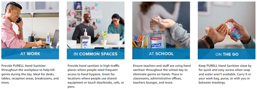 • Place these 8 fl oz PURELL pump bottles in areas where frequent hand sanitizing is needed, including classrooms, office reception areas, medical stations, breakrooms, and more