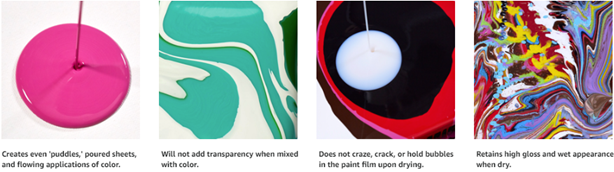 Designed to not craze or crack in poured applications, which creates even poured puddles and acrylic sheets. Mix with Soft Body Acrylic Color to promote drying with a smooth even colored film. WARNING: This product can expose you to chemicals including 2-Ethylhexyl acrylate, which is known to the State of California to cause cancer. For more information go to www.P65Warnings.ca.gov.