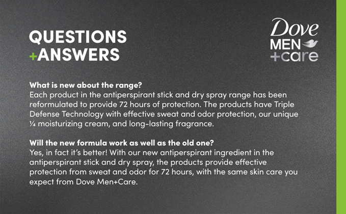 • 1/4 MOISTURIZING CREAM: Dove Men+Care antiperspirant uses our exclusive care for comfortable underarms all day
