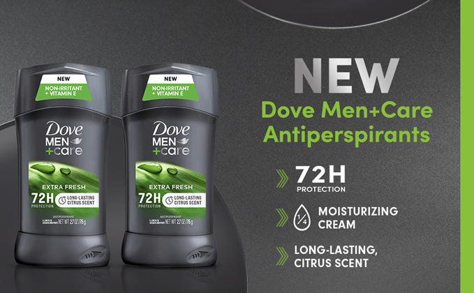 Looking for an antiperspirant deodorant for men that's designed to keep you feeling fresh and confident? Try Dove Men+Care Extra Fresh Antiperspirant Deodorant Stick. Our Extra Fresh antiperspirant deodorant provides powerful 72-hour protection against sweat and odor for lasting freshness. This antiperspirant for men is formulated with our ¼ moisturizing cream to deliver skin moisturization. Dove Men+Care Extra Fresh Antiperspirant Deodorant features a long lasting energizing citrus scent to invigorate your senses and leave you feeling fresh all day. Simply apply Dove Men+Care Extra Fresh Antiperspirant Deodorant in evenly onto each of your underarms for best results. You now have the powerful protection you need. All Dove products are cruelty-free, following Dove's global commitment not to test on animals. Looking for more Dove Men+Care skin care products? Try the full range of Dove Men+Care products, including deodorants, antiperspirants, dry spray antiperspirant deodorants, body washes, face and body bars, and hair care products.