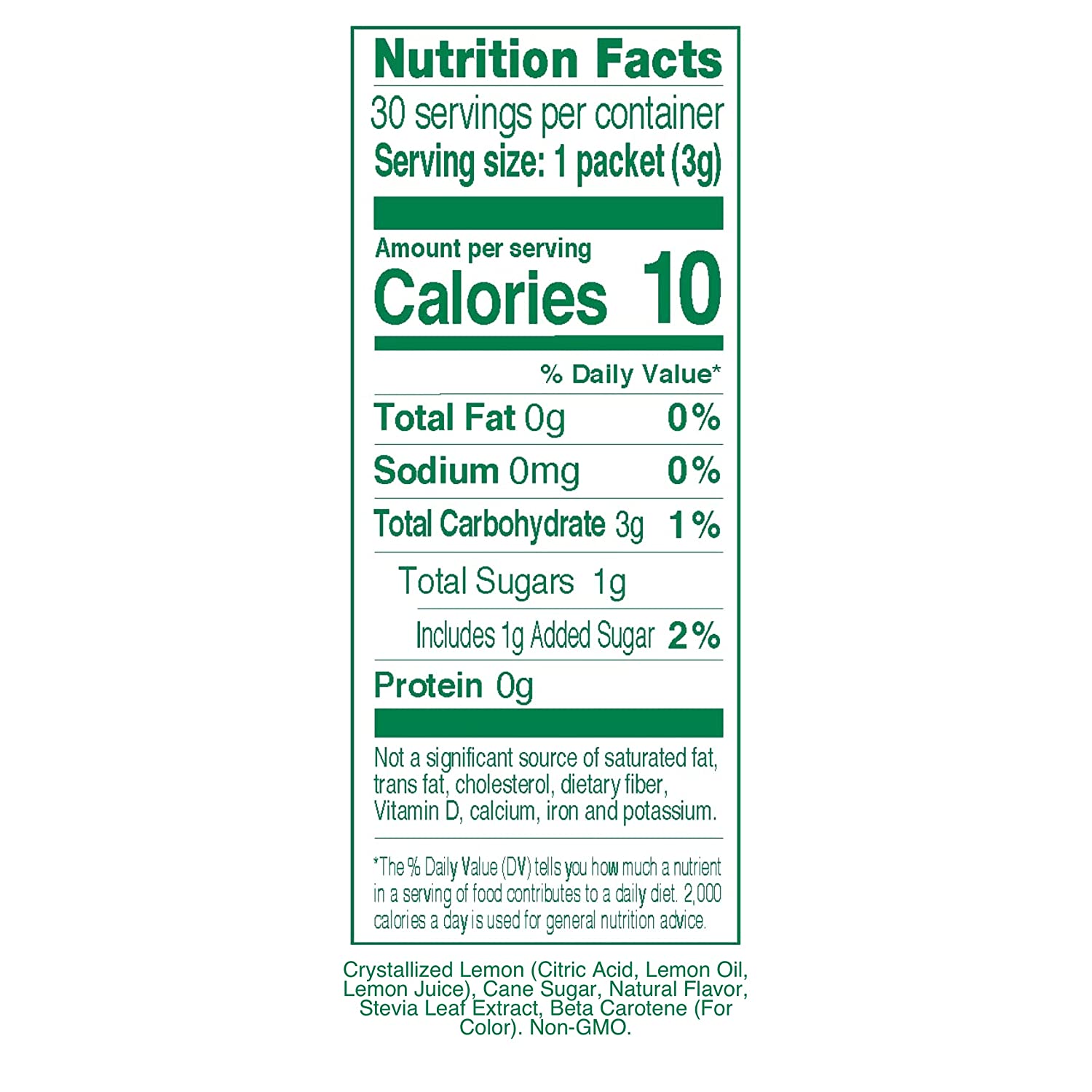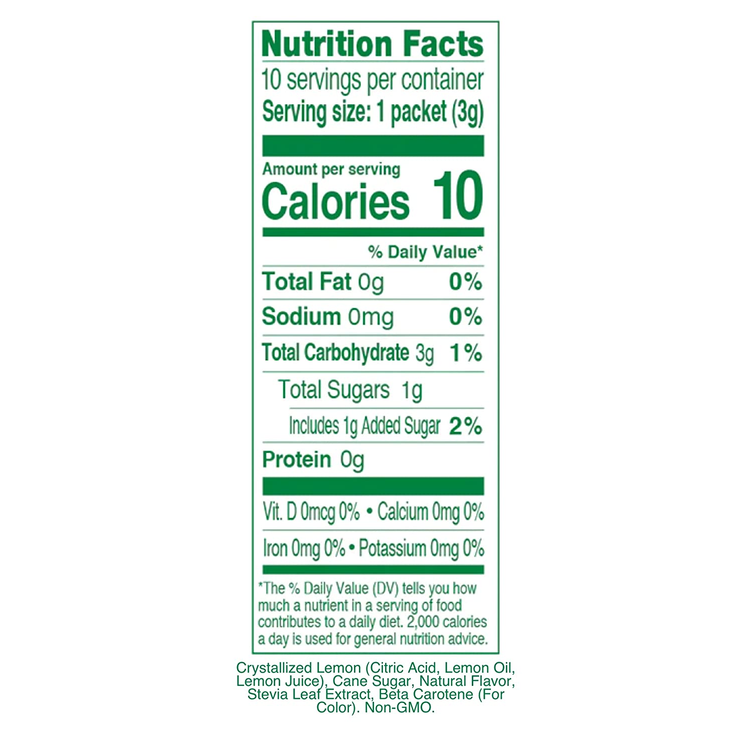 • LOW CALORIE DRINK MIX: Each powdered drink mix packet contains 10 calories, 1 gram of sugar and 3 grams of total carbohydrates