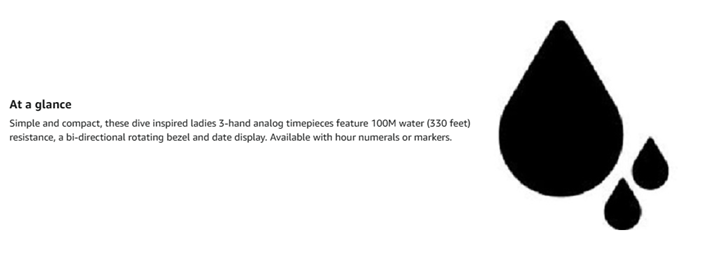 • Water resistant to 100 m (330 ft): In general, suitable for swimming and snorkeling, but not scuba diving