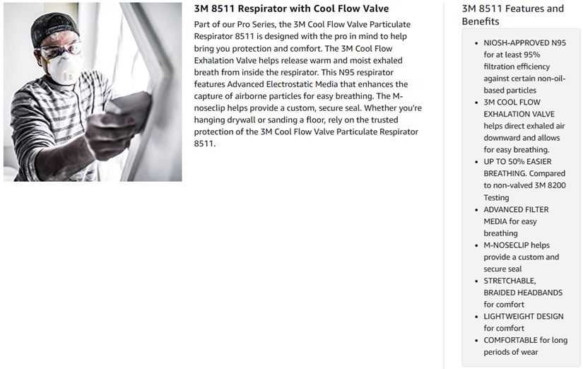 • 3M COOL FLOW EXHALATION VALVE helps direct exhaled air downward and allows for easy breathing.
