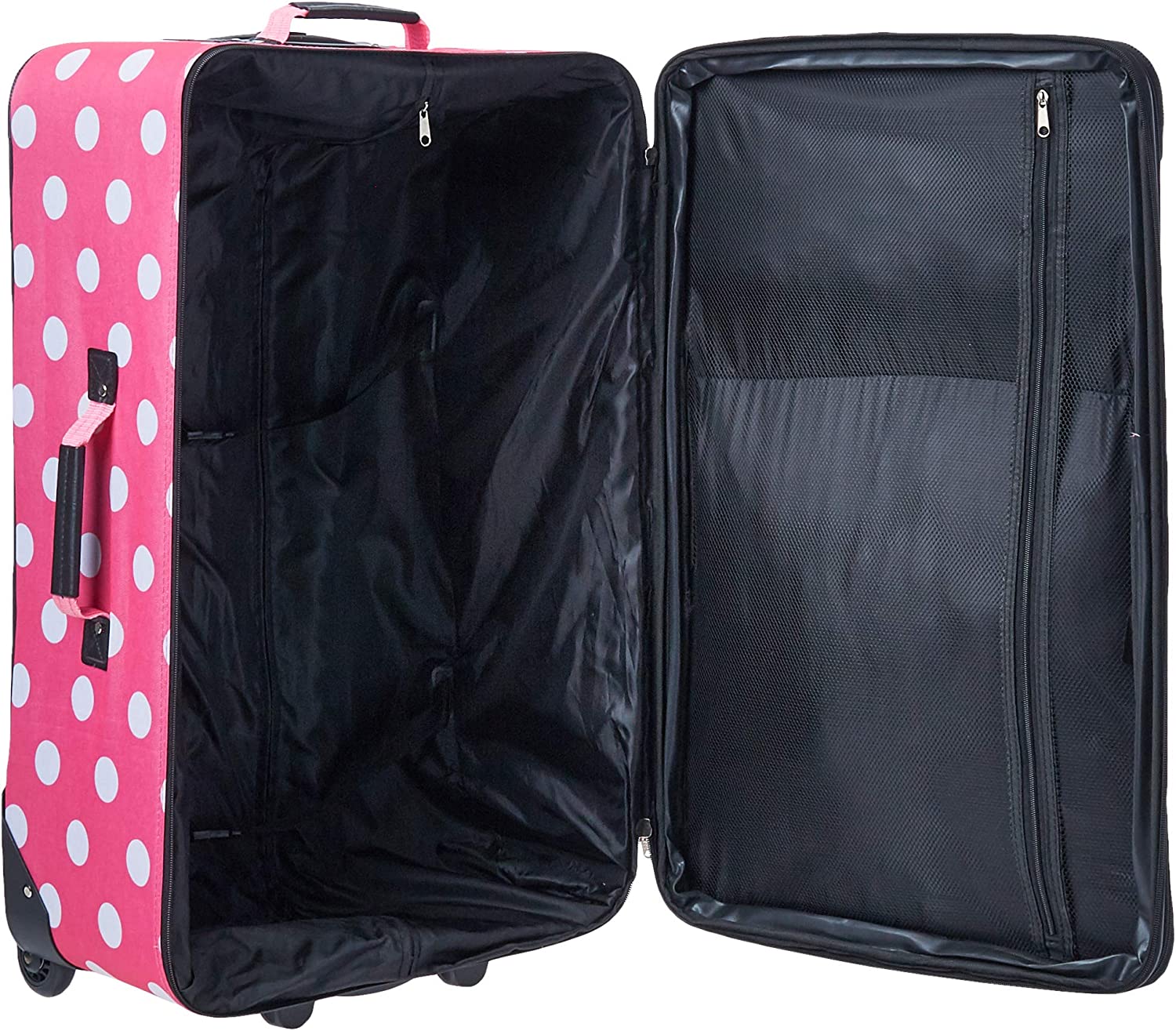 Rockland Vara Softside 3-Piece Upright Luggage Set, Pink Dots, 20 inches,22 inches,28 inches