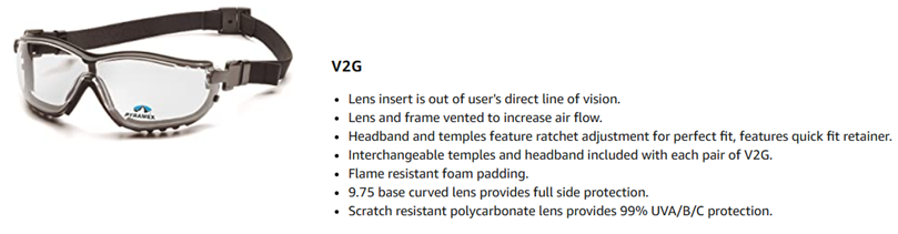 Included Components‎+2.5 Safety Glasses with strap