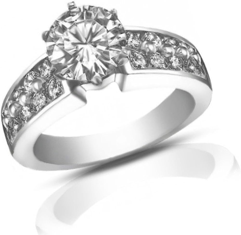 Madina Jewelry 2.00 ct Ladies Two Row Round Cut Diamond Engagement Ring in 14 kt White Gold