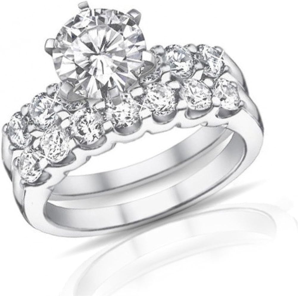 Madina Jewelry 2.05 ct Round Diamond Engagement Ring with Wedding Band in Platinum