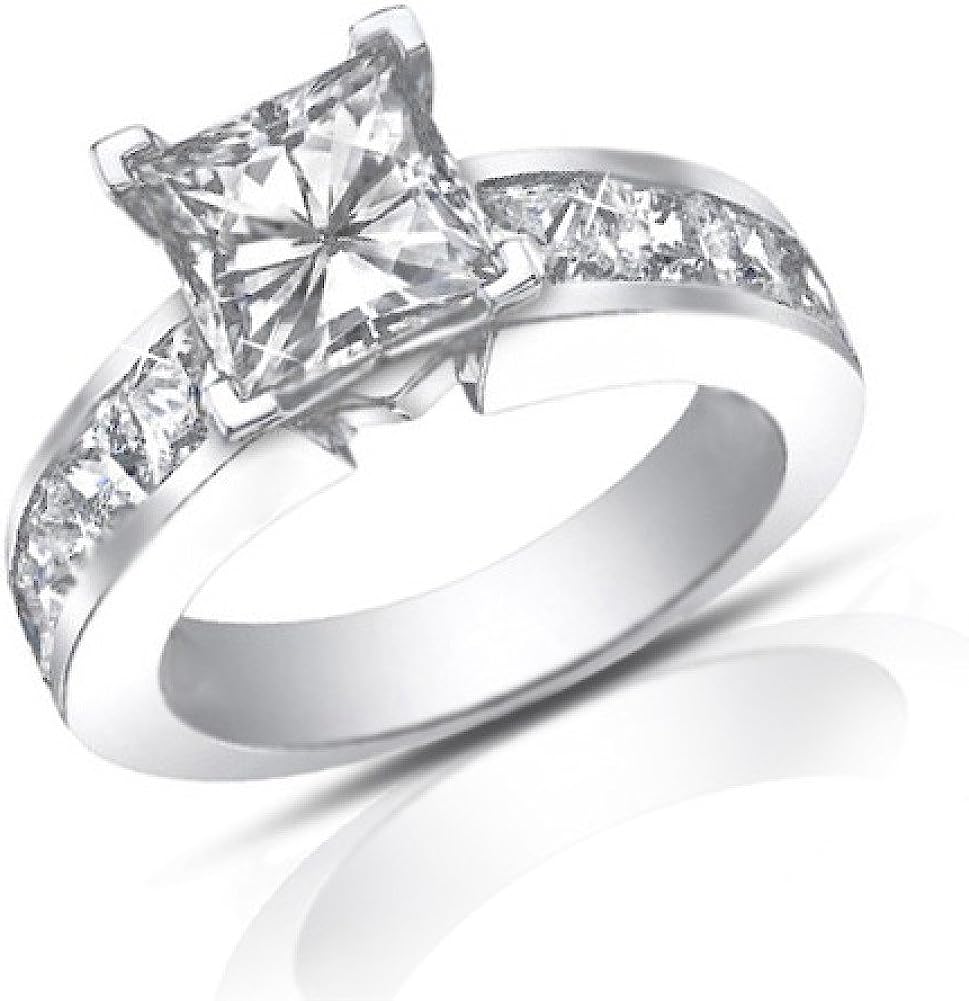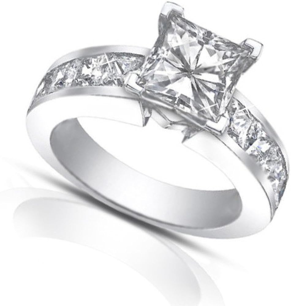 Madina Jewelry 2.50 Ct Ladies Princess Cut Diamond Engagement Ring in Platinum