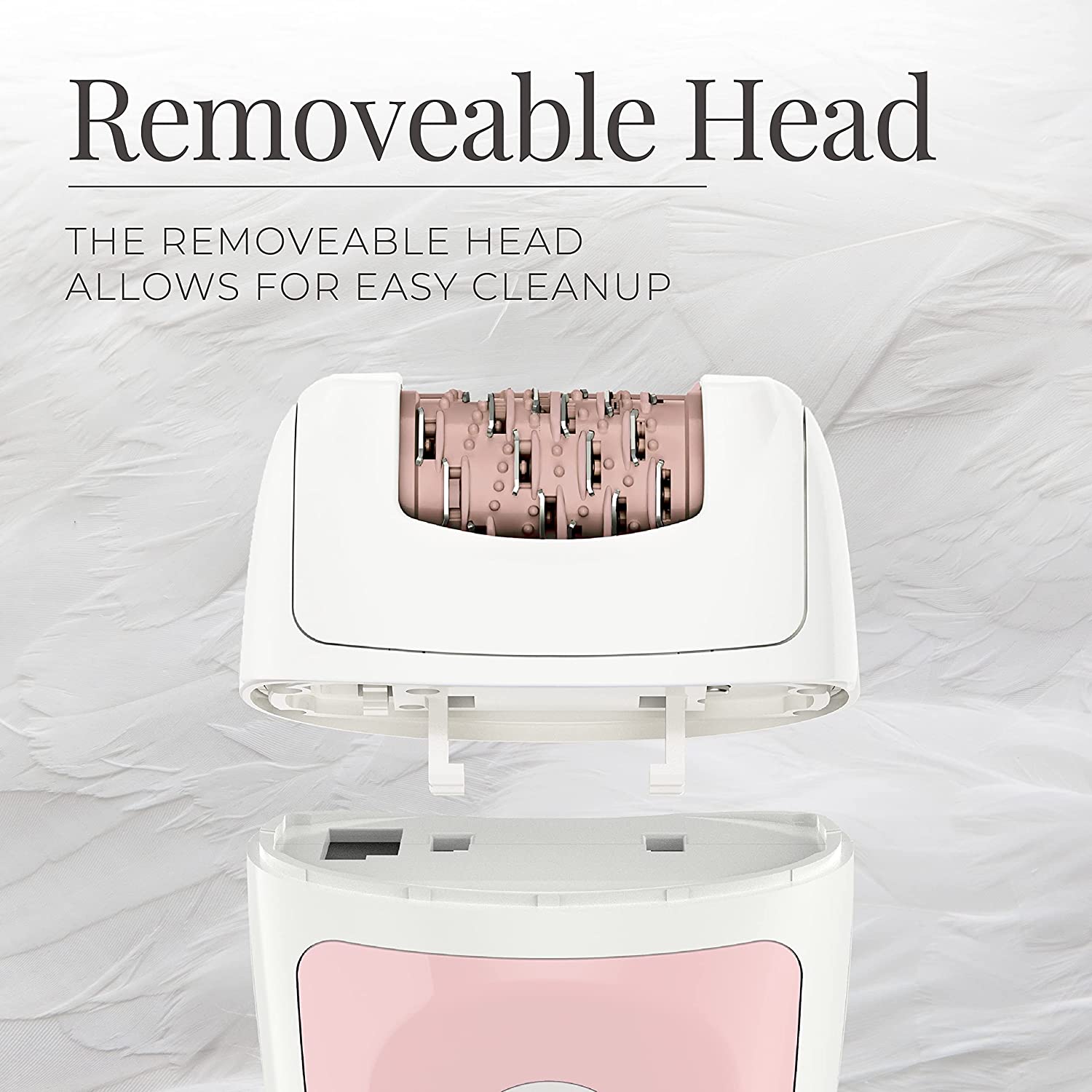 Stay hair-free for up to six weeks* with the Smooth & Silky Essential Epilator, featuring an updated design that’s built for comfort**! The angled head stays close to the skin, letting the 40 tweezers quickly remove even the shortest hairs straight from the root. Plus the dual speed settings let you find the performance that's most comfortable for you, and the removable head allows for easy cleanup! *varies by use and technique **versus previous REMINGTON model.