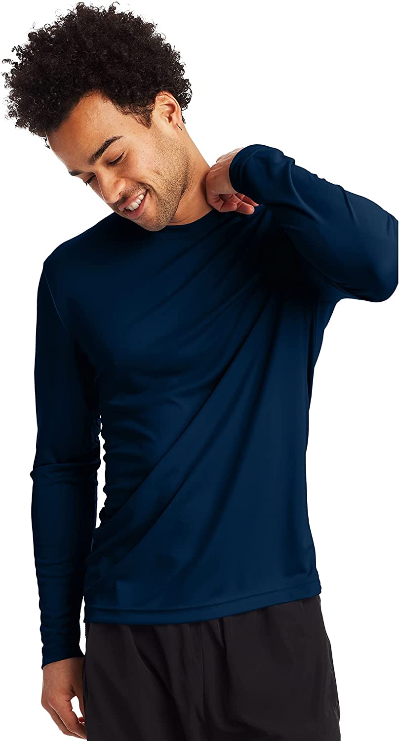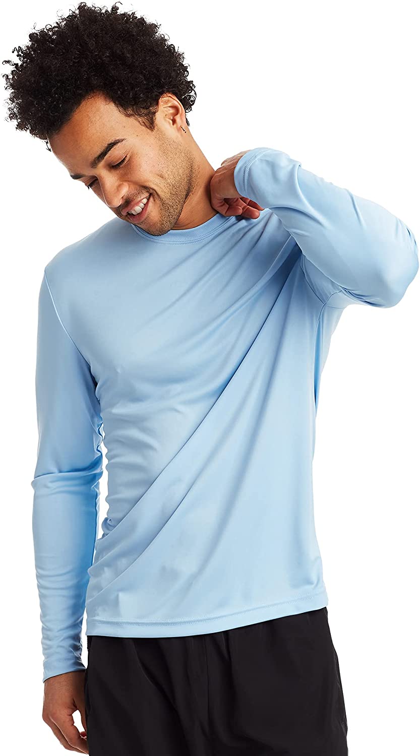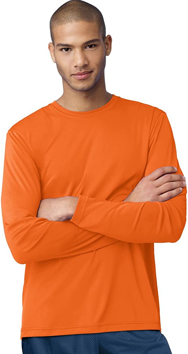 Hanes Men's Long Sleeve Cool Dri T-Shirt UPF 50+, X-Large, 2 Pack ,Safety Orange