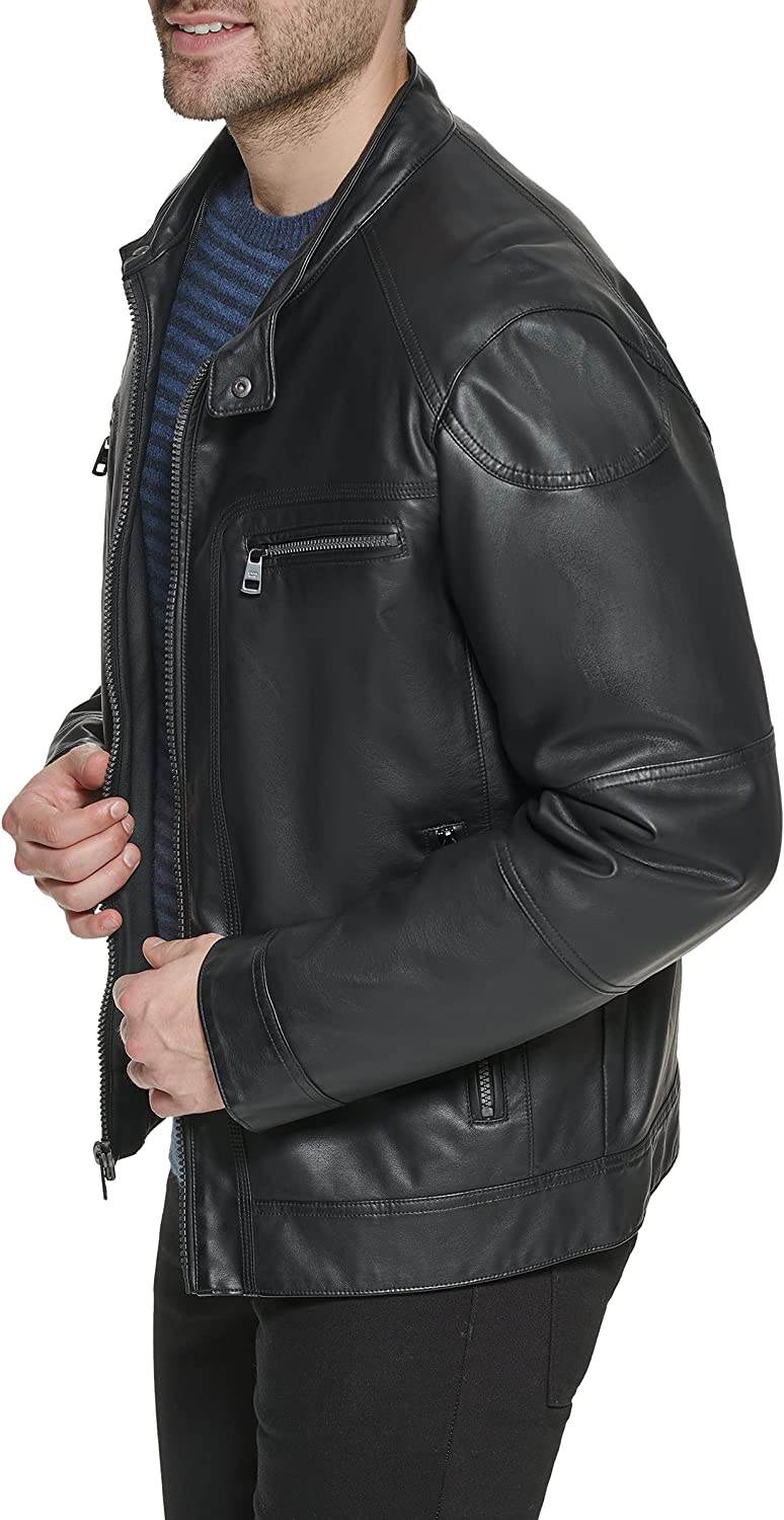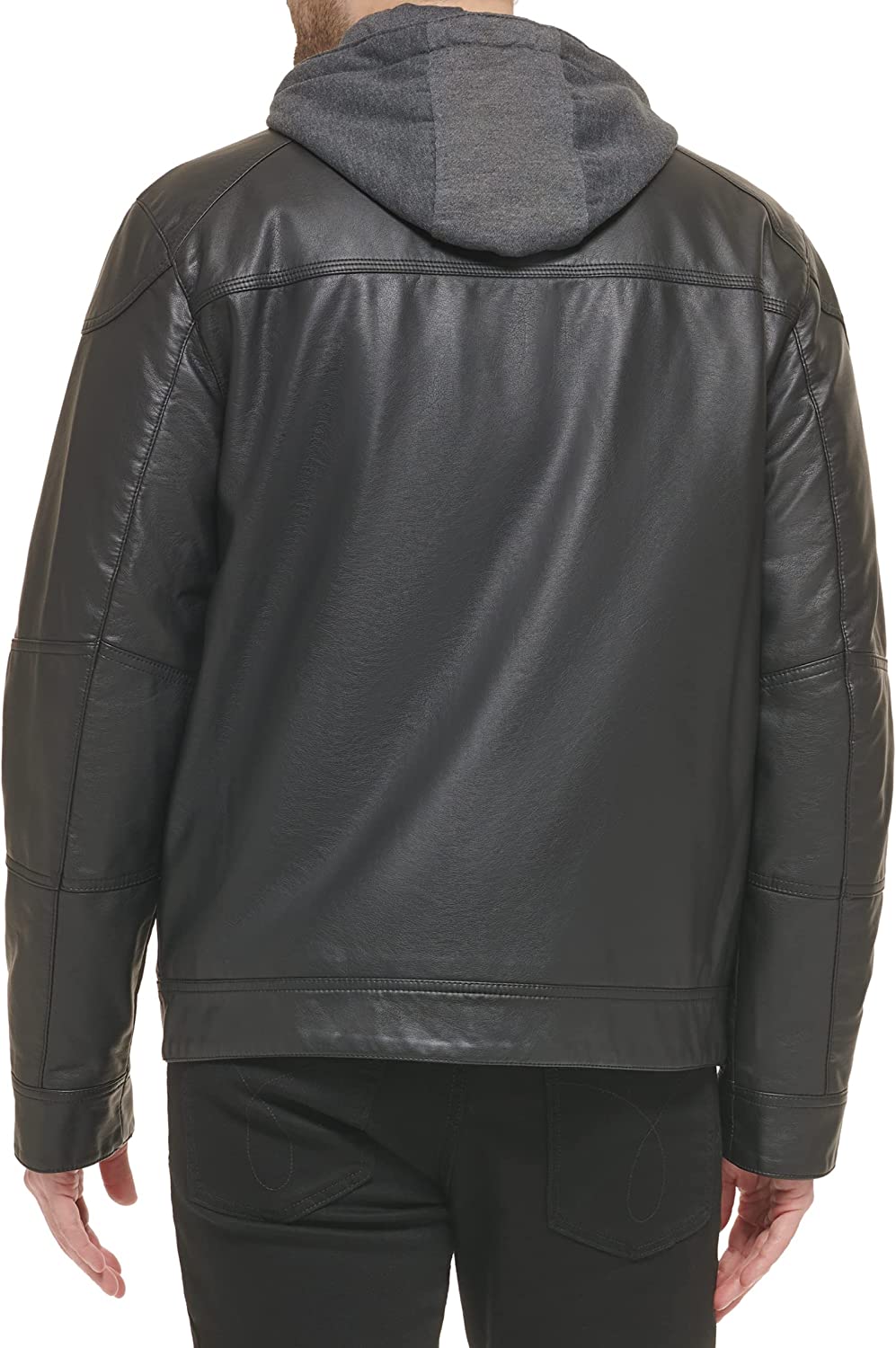 Calvin Klein Men's Faux Lamb Leather Moto Jacket with Removable Hood and Bib