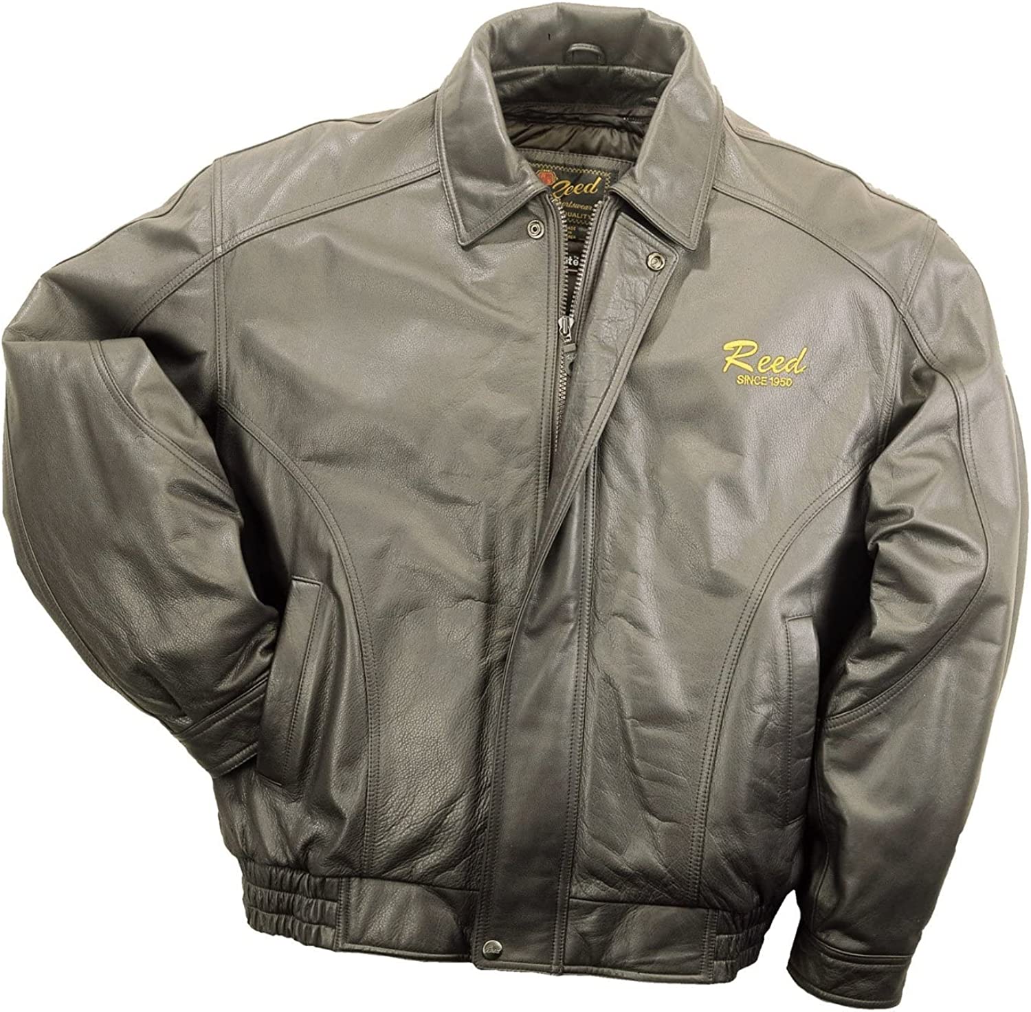 REED Men's American Style Bomber Genuine Leather Jacket