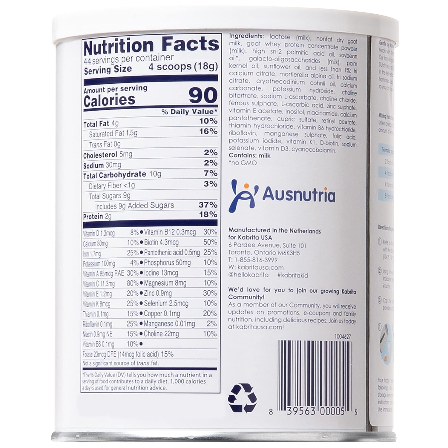 • Dedicated Customer Service Team: Questions or issues with Kabrita? We're here to help. You can try Kabrita Goat Milk Toddler Formula confidently and add it to your toddler essentials.