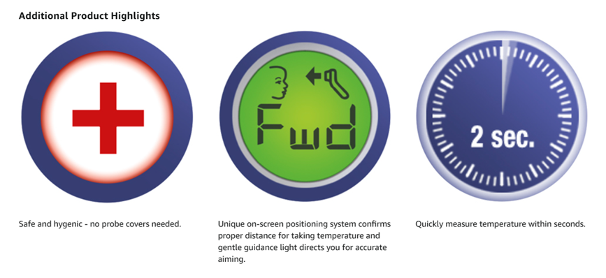 • EASY TO READ – The color coded temperature guidance helps get readings at a glance, and understand them easily. A green display suggests a normal temperature, yellow signifies an elevated temperature and a red display indicates a high temperature.