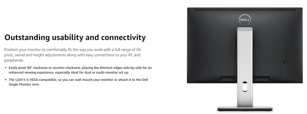 • Consistent colors right out of the box- the U2415 comes factory tuned at 99% sRGB coverage at a deltaE less than 3.