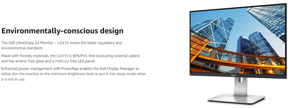 • 1000:1 Contrast Ratio, 16.78 Million Colors, 6ms Response Time. Enhanced power management with PowerNap enables the Dell Display Manager to either dim the monitor to the minimum brightness level or put it into sleep mode when it is not in use.
