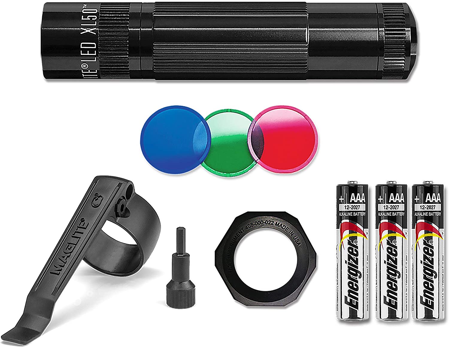 Handheld Flashlight, Flashlight Grade Tactical, Rechargeable No, Lamp Type LED, Flashlight Battery Size AAA, Flashlight Battery Type Alkaline, Number of Batteries 3, Batteries Included Yes, Battery Burn Time 6. 8 hr. , Length 4. 80 In. , 200 Lumens, Lumens Range 100 to 249, 6. 8 hr. Run Time on High Setting, Maximum Lumens Output 200, Body Color Black, Body Material Aluminum, Body Dia. 1. 00 In. , Switch Type Push Button, Lens Material Polycarbonate, Safety Rated Not Safety Rated, Beam Distance 224m