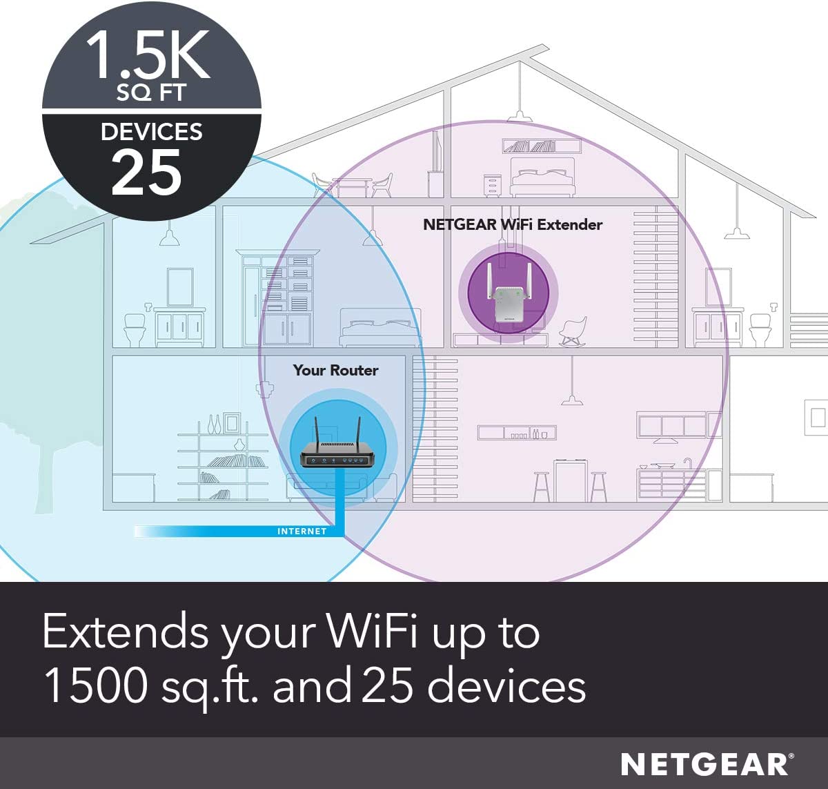 NETGEAR Wi-Fi Range Extender EX3700 - Coverage Up to 1000 Sq Ft and 15 Devices with AC750 Dual Band Wireless Signal Booster & Repeater (Up to 750Mbps Speed), and Compact Wall Plug Design