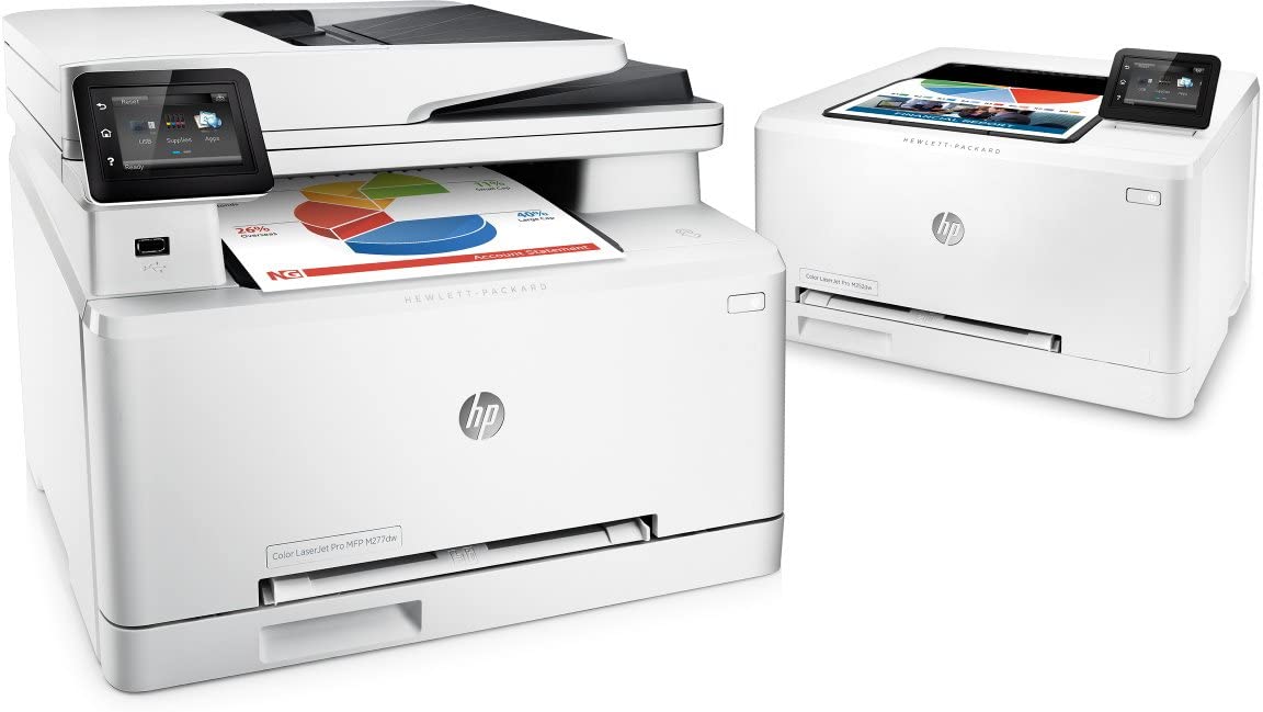 HP Color LaserJet Pro M277dw All-in-One Laser Printer - Black and Color: 19PPM / Print, Scan, Copy Fax / Print Resolution: 600 x 600 dpi / Optical Scan Resolution: 1200 x 1200 dpi / Automatic Duplex; 3" LCD Touchscreen / 150-Sheet Input Tray / 50-Sheet ADF / USB 2.0, Ethernet, and Wi-Fi with NFC - 90 Day Warranty - Does Not Come With Toner