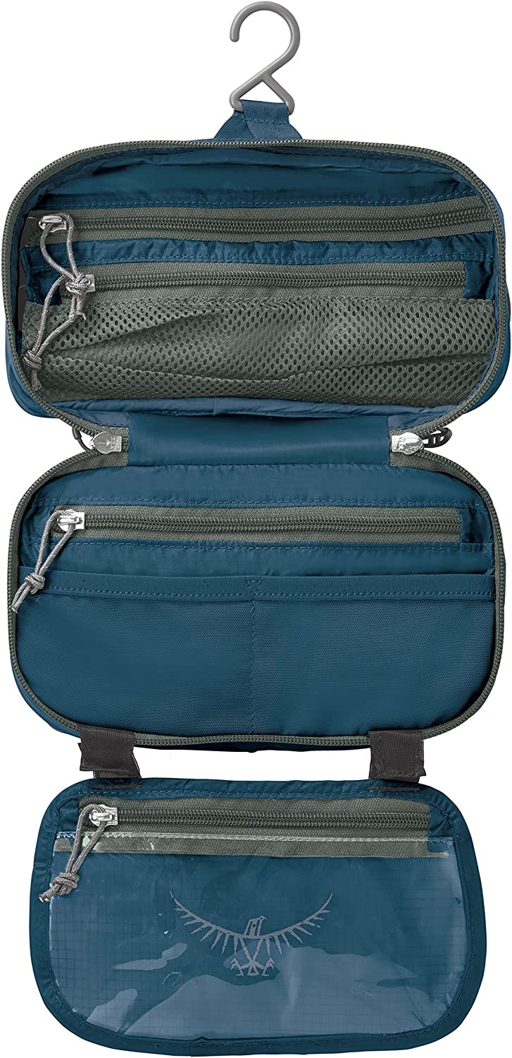Keep your toiletries, first aid, or backpacking kitchen ship shape with Osprey’s Ultralight Zip Organizer. The separate see-through pouches hang from a clip loop so you can view your gear at a glance.