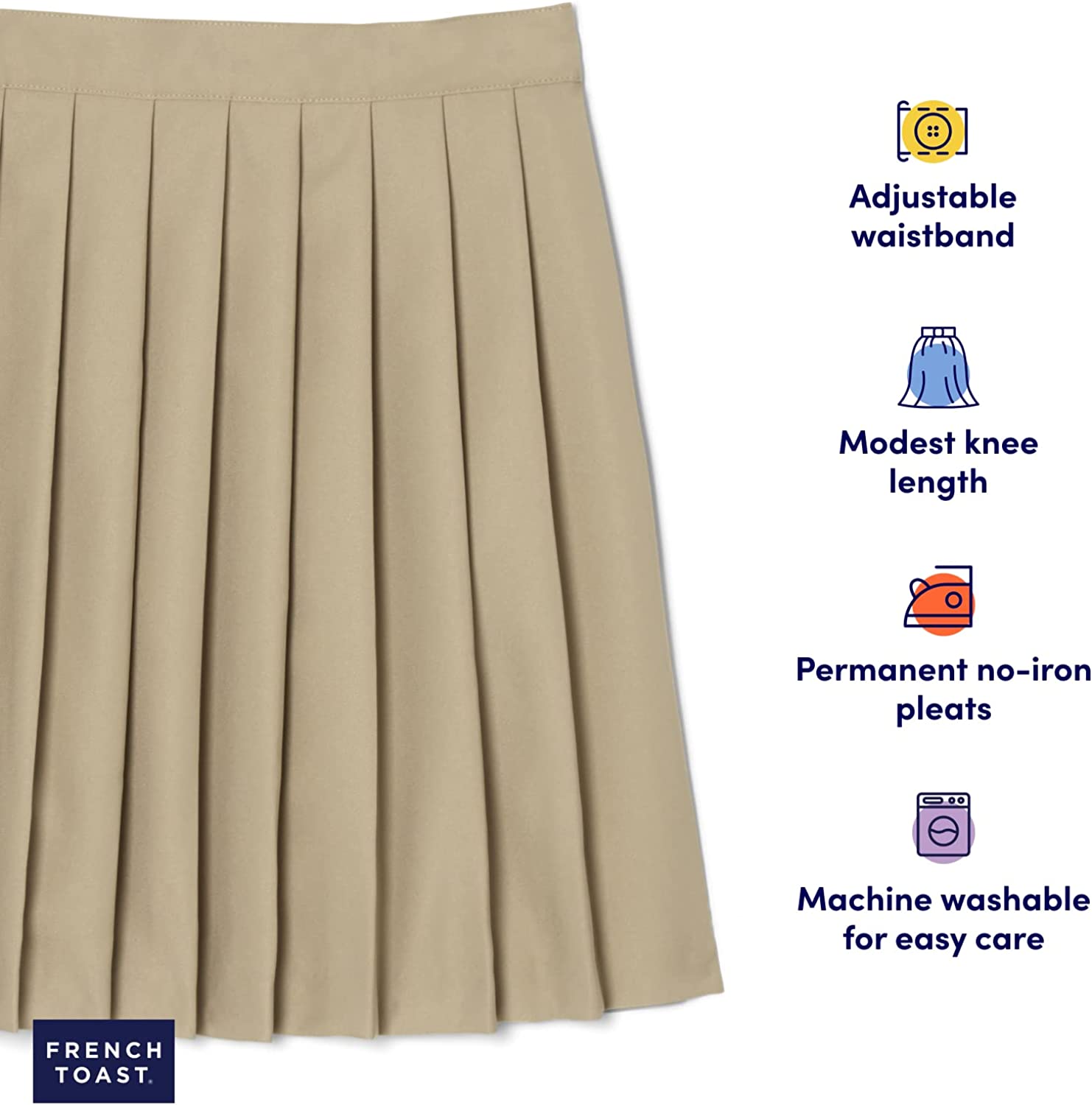 Put some prep in their step Keep them looking their best in the classroom and out with our classic pleated skirt. A wardrobe staple for any student, this knee-length skirt features an adjustable waistband for pull-on styling and is a must-have all year round. Dress it up with a blazer, or pair with a plain tee for a casual look made for the playground. All of our clothes feature tagless labels for ultimate comfort. Meet the next generation of schoolwear French Toast is dedicated to making the best possible schoolwear accessible to ALL kids and ALL families from ALL walks of life. We are on a mission to help kids shine, whatever their passion, no matter the dress code, wherever they live or go to school. Since 1985, French Toast has been trusted by thousands of schools nationwide as their uniform provider and is committed to partnering with the communities we serve.