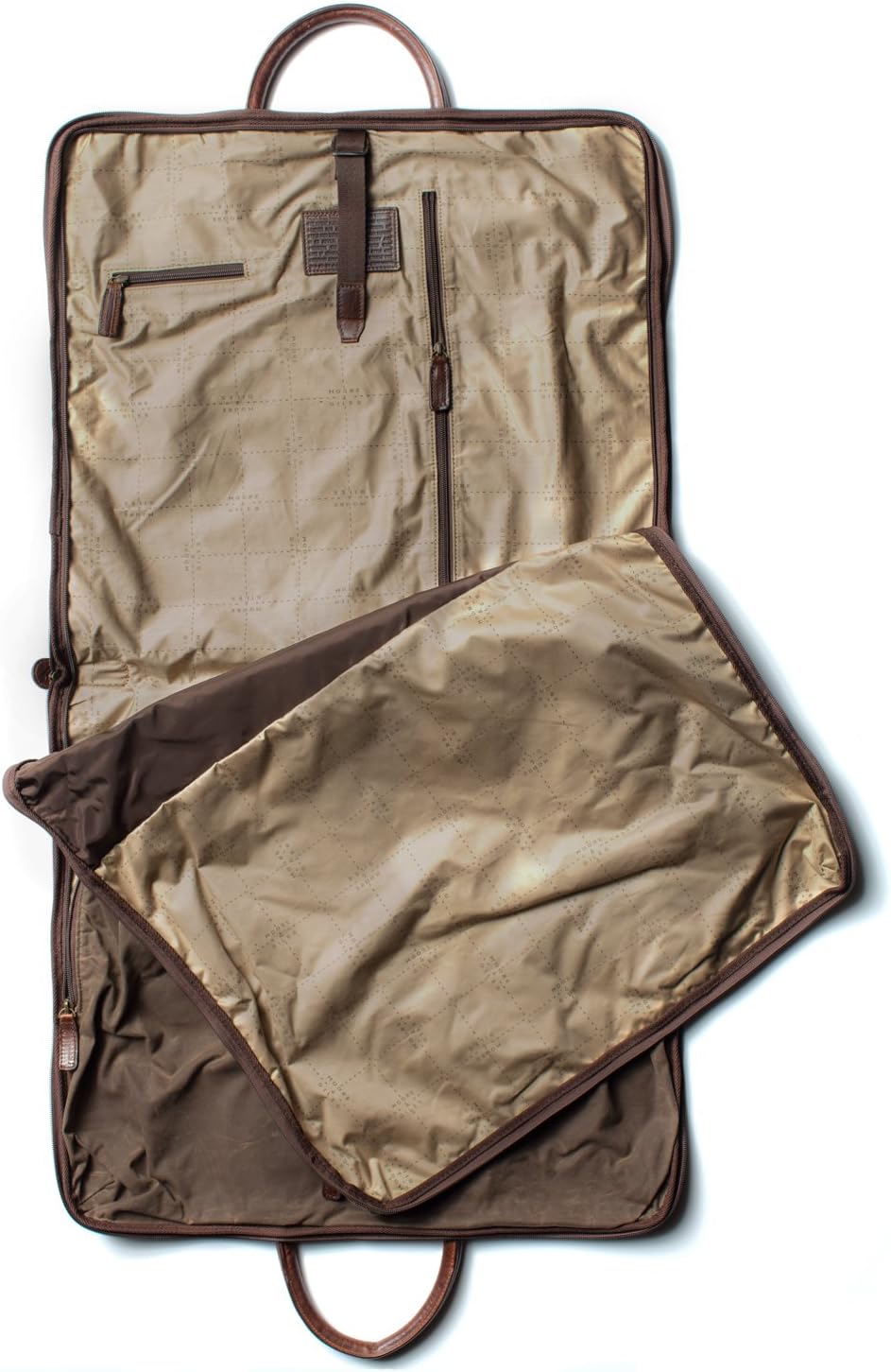 Features interior pockets for shoes, ties, other accessories and a door hanger