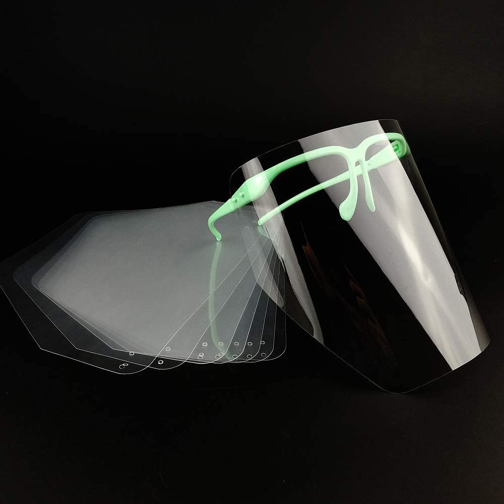 Adjustable Full Face Shield with 10 pieces of CLEAR Detachable Visors. Made of super transparent, recyclable PET material