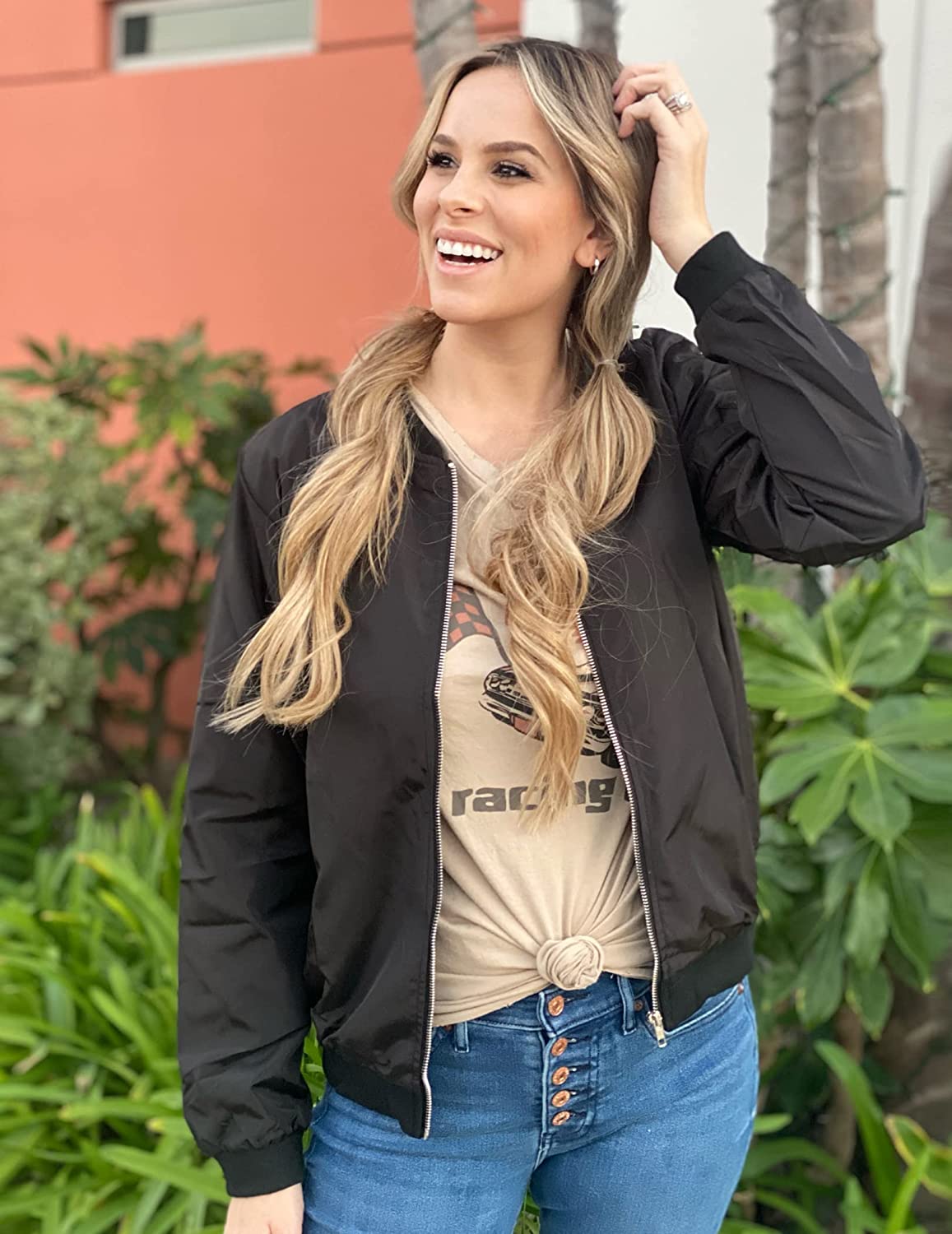 Zeagoo Women's Bomber Jacket Casual Coat Zip Up Outerwear Windbreaker with Pockets S-XXL