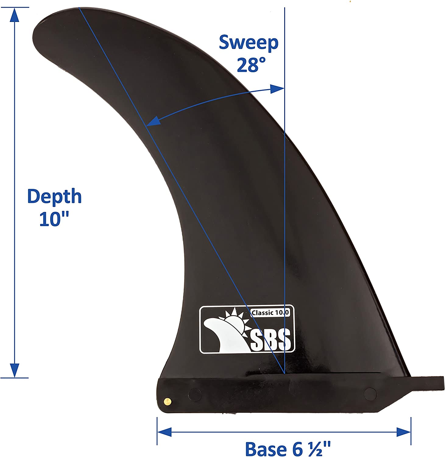 SBS 10" Surf & SUP Fin - Free No Tool Fin Screw - 10 inch Center Fin for Longboard, Surfboard & Paddleboard