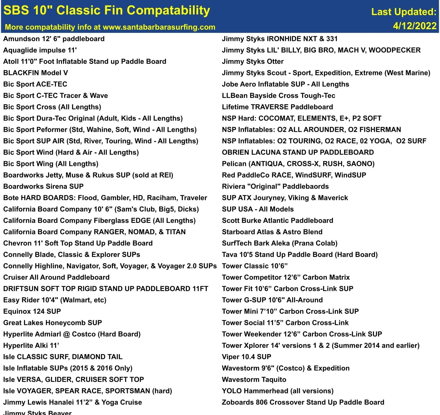 • COMPATIBILITY: Works on any SUP or surfboard with a standard 8.5" or 10.5" fin box. KNOWN INCOMPATIBILITIES: Some Inflatable SUPs such as the Bali Solstice, AquaMarine SPK2, see our compatibility image for more.