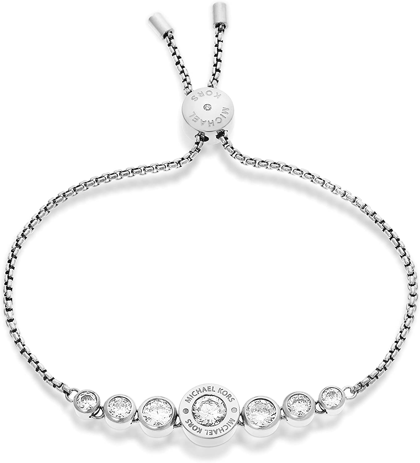 Michael Kors Women's Stainless Steel Silver-Tone Slider Bracelet with Crystal Accents