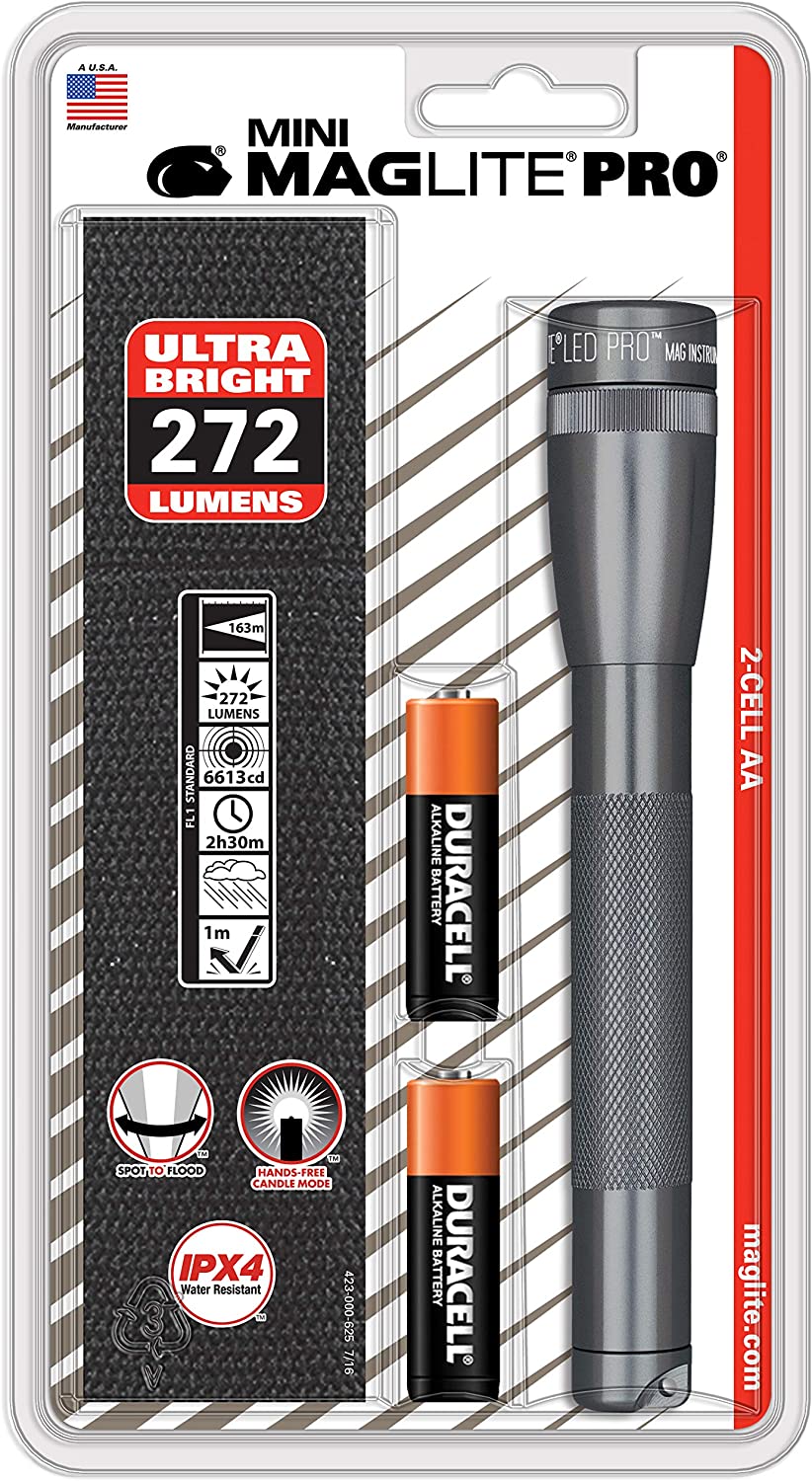 Included Components‎Mini Maglite LED PRO 2AA Gray Flashlgiht w Holster