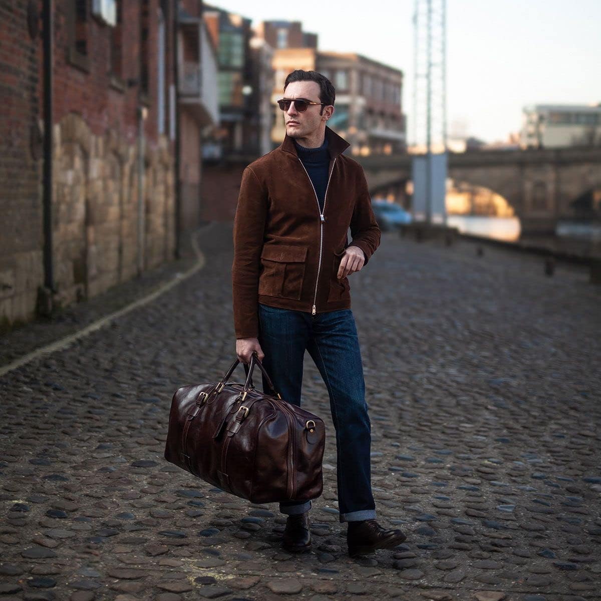 Luxury Leather Extra Large Travel Bag | The FleroEL | Handcrafted In Italy | Chestnut Tan Brown
