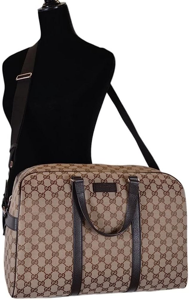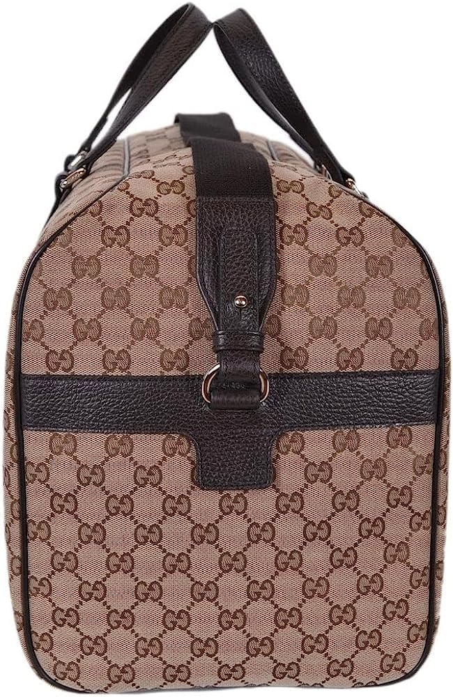 A favorite Gucci travel piece this large beige and brown canvas Gucci GG canvas duffle bag will make your next trip a breeze. This roomy luggage piece has room for clothes, shoes, and toiletries. Model 610105