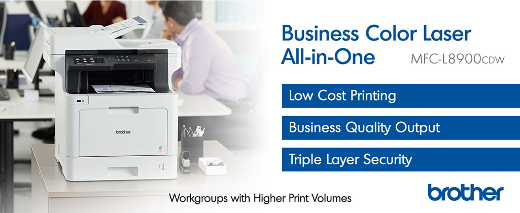 The Brother mfc-l8900cdw color laser all-in-one is ideal for offices and small workgroups with higher print volumes. Brother genuine super High-Yield 6,500-page replacement toner cartridges (approximate yield based on ISO/IEC 19798) deliver low cost output. Print/copy up to 33 pages per minute in black and color (1). Gigabit Ethernet/wireless networking. 70-Page capacity auto document feeder with two-sided scanning at up to 58ipm; legal-size scan glass. Automatic duplex printing. Print from/scan to mobile devices over a wireless network (3). Scan to a variety of destinations. 5.0" color touchscreen display with customizable shortcuts. Advanced security features for network user authentication Plus device access restriction.