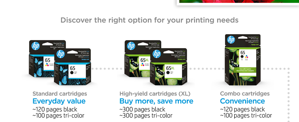 Expect professional-quality documents when you use Original HP printer ink and toner cartridges. Dependable performance, consistent page yields, and standout results are the norm – something the competition can’t match. With Original HP Ink and Toner cartridges, you can also avoid costly reprints and help ensure the flawless performance you expect from your HP printer.