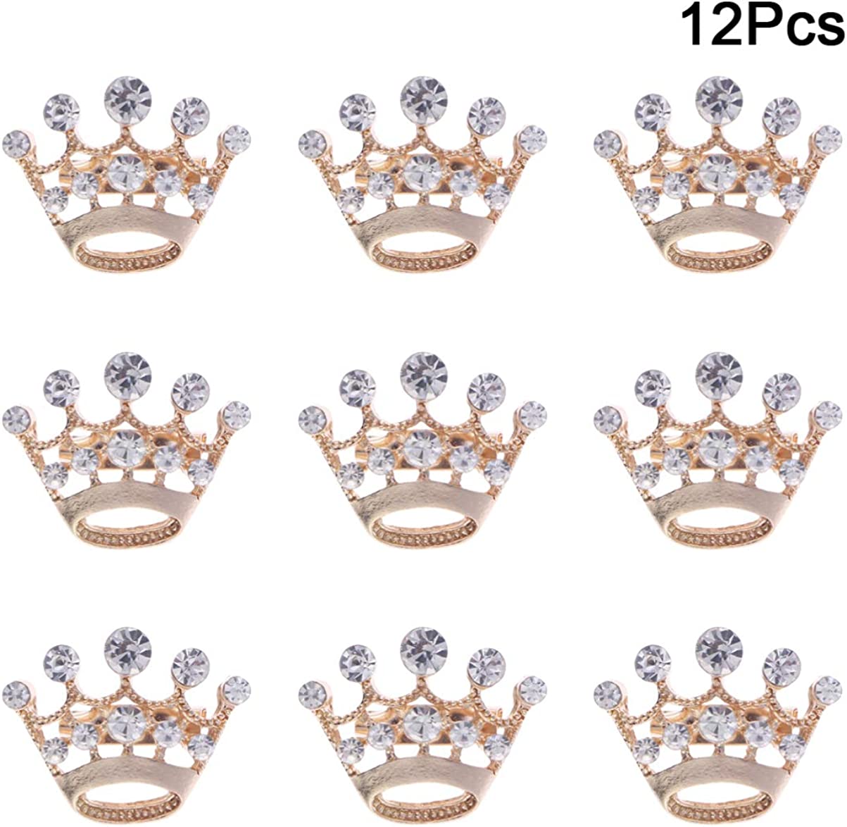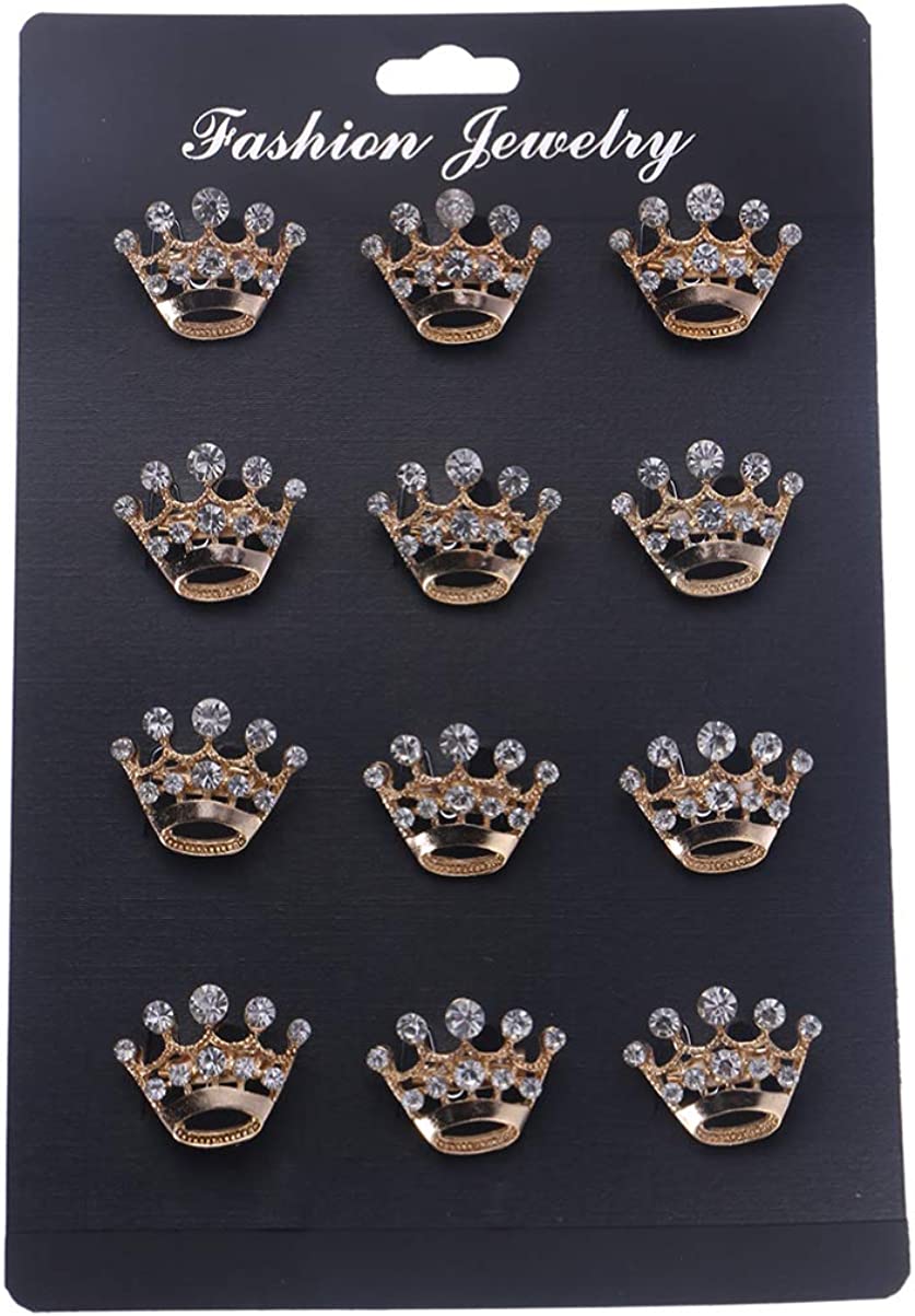 ULTNICE 12pcs Tiara Crown Brooch Pin Wedding Party Pageant Brooch (Gold)